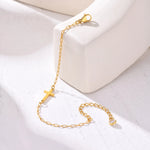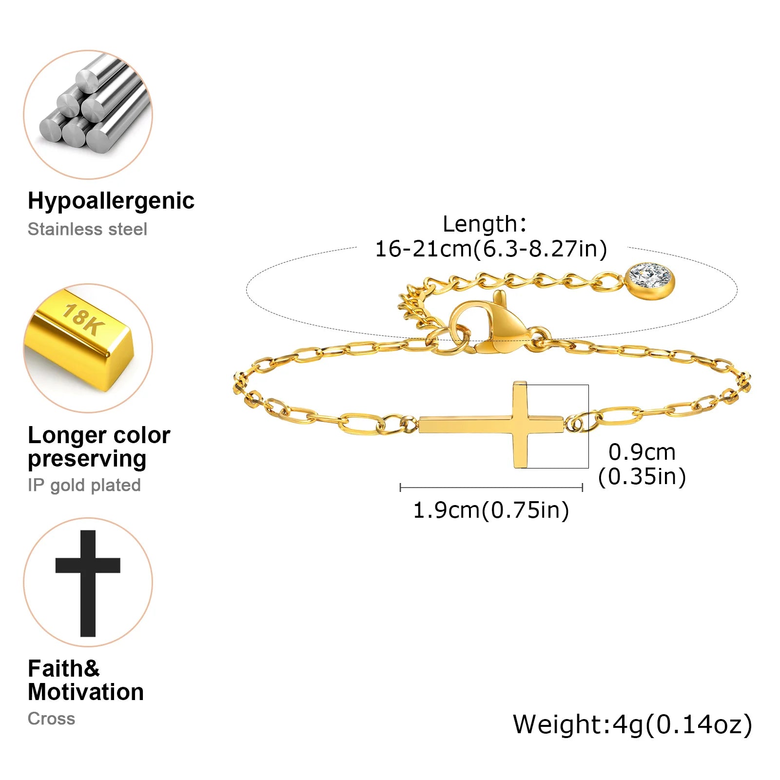 A sparkling CZ cross charm on a dainty square-link chain — clean, minimal, and rich with meaning. Waterproof stainless steel keeps it looking polished day after day. Layer it with other fine chains or let it speak on its own.