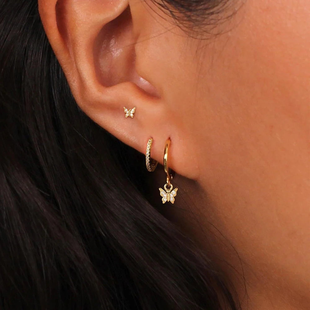 Transform your style with our Mariposa Butterfly Earring Set. This gorgeous 3-piece set features delicate butterfly charms adorned with sparkling cubic zirconia, perfect for mixing and matching or wearing as a curated ear stack.