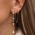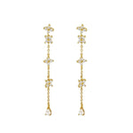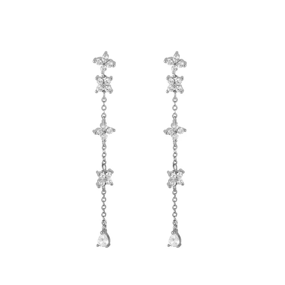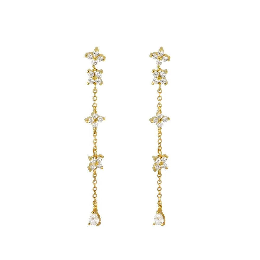 Add a touch of elegance to any outfit with these stunning Parisienne Flower Drop Earrings. Featuring delicate floral details adorned with sparkling cubic zirconia stones on a graceful chain drop design.