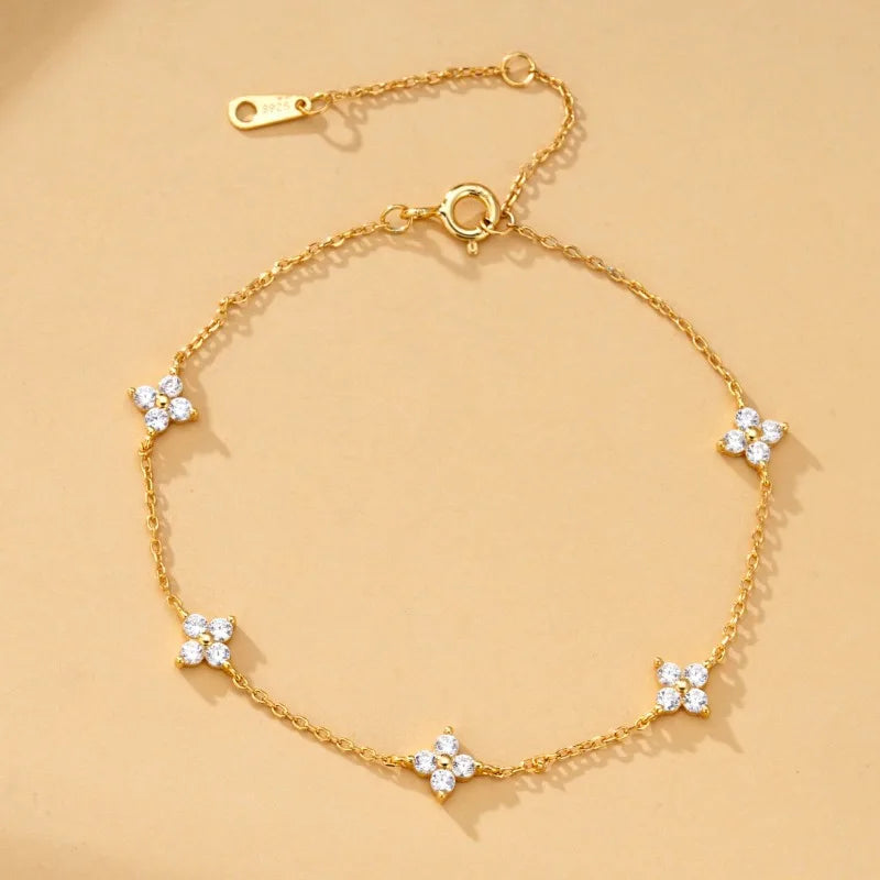 Add a touch of luck to your look with our Lucky Clover Crystal Bracelet. Featuring a delicate four-leaf clover design adorned with sparkling cubic zirconia on an adjustable chain.