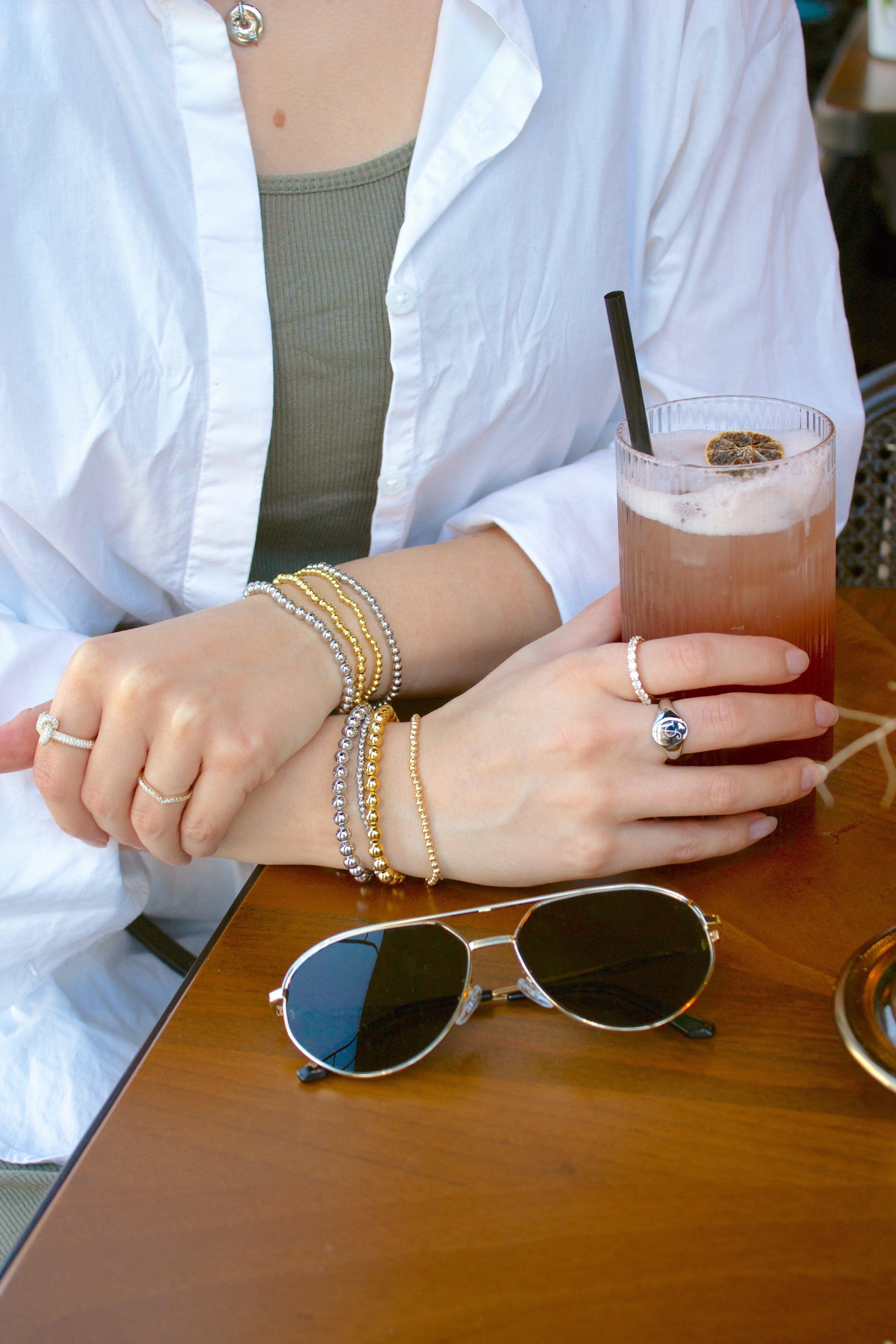 Our Stacking Bracelets are all individual bracelets brought together to make curated sets. You can wear them all together, individually or even mixed-and-matched with your other favorite pieces.