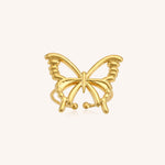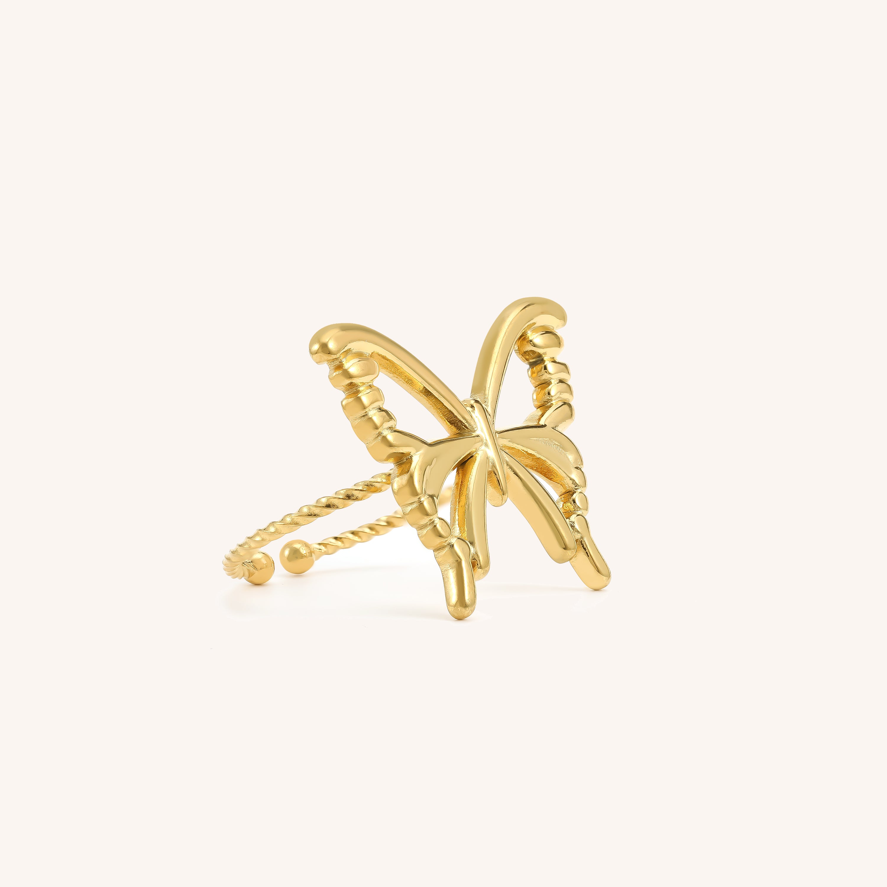 Delicate wings capture light in this refined butterfly ring, a timeless symbol of transformation and grace. Crafted with meticulous attention to detail, this piece combines elegant design with wearable artistry.