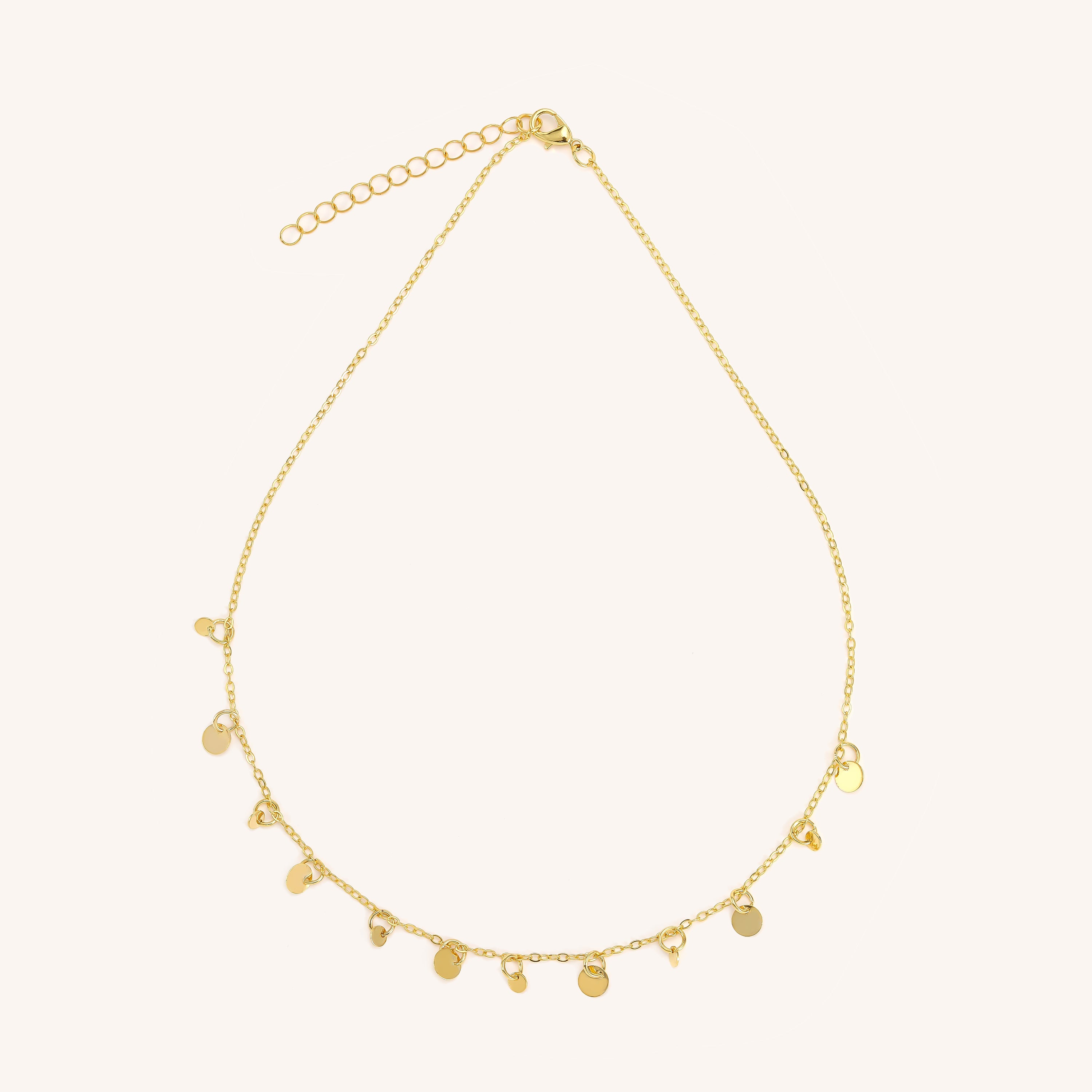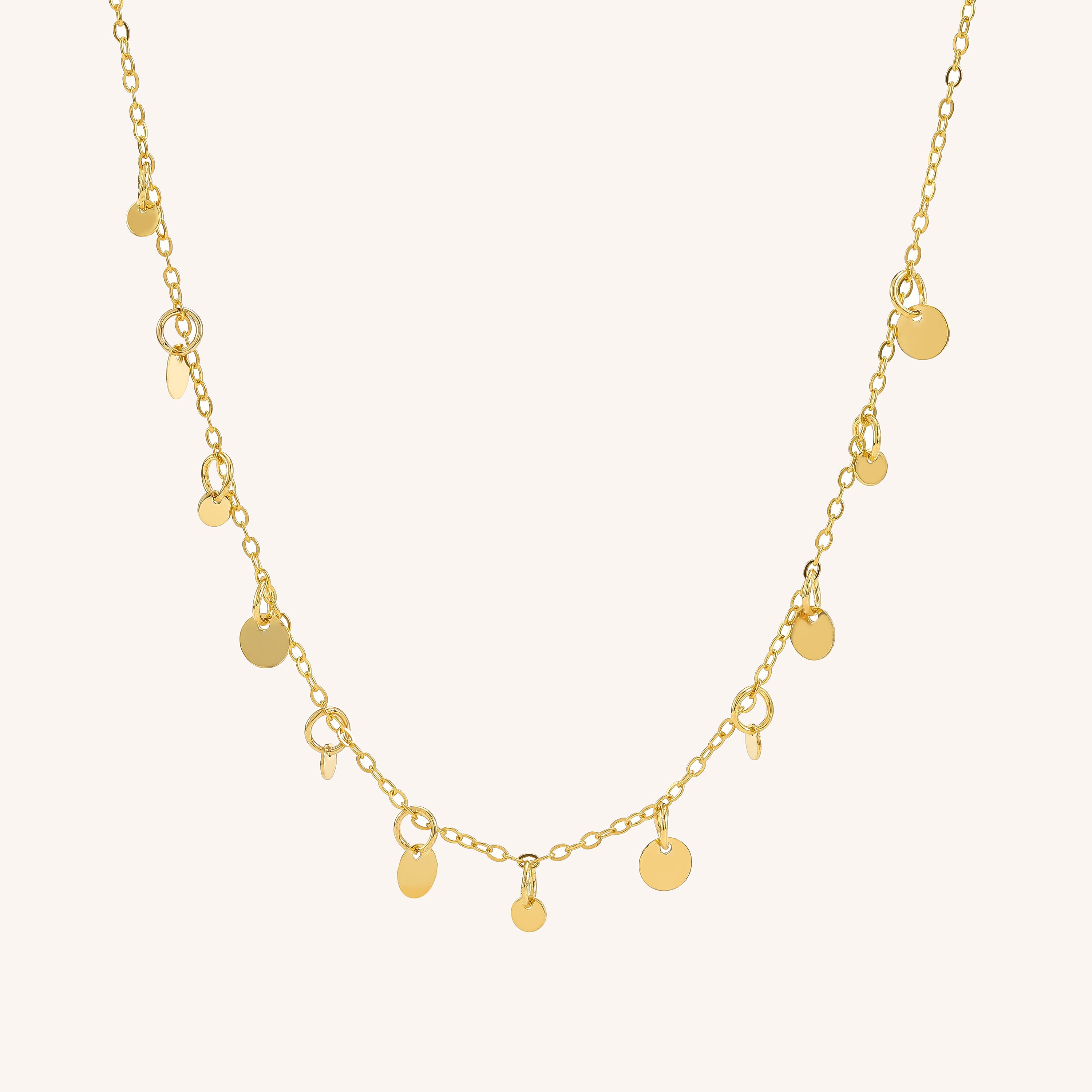 The Golden Confetti Necklace shines with multiple round, eye-catching charms that pick up the light with every move. It’s the perfect accessory to add a fun pop to any outfit.