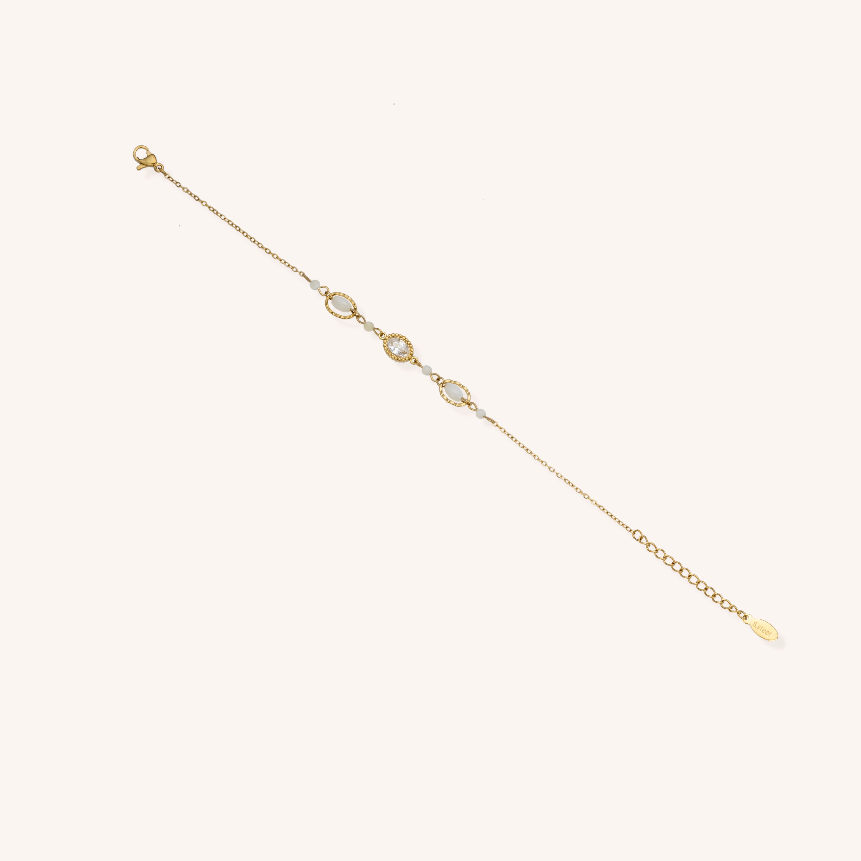 Three stunning gold sections studded with radiant stones create maximum style and draw attention. A playful statement piece that shines bright.