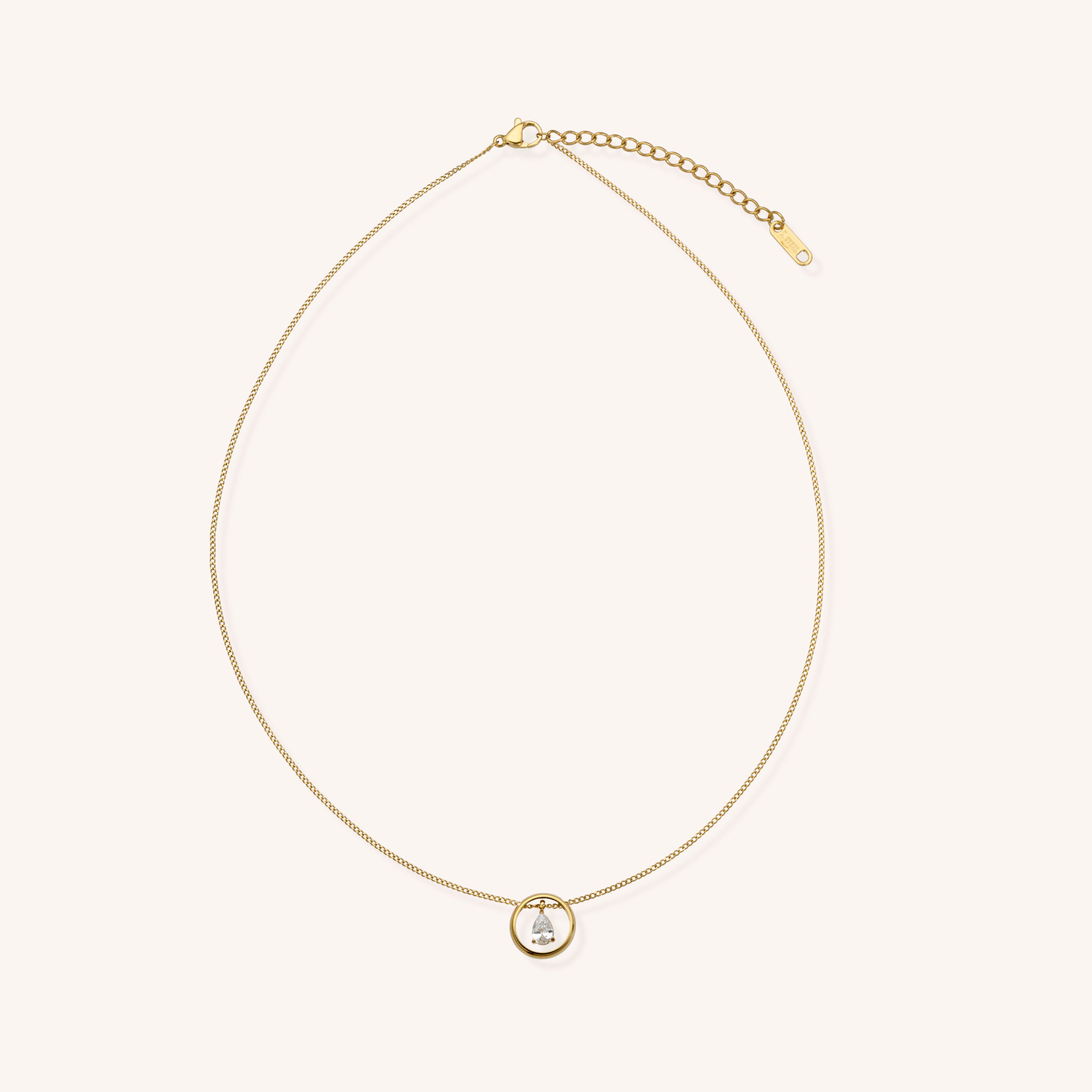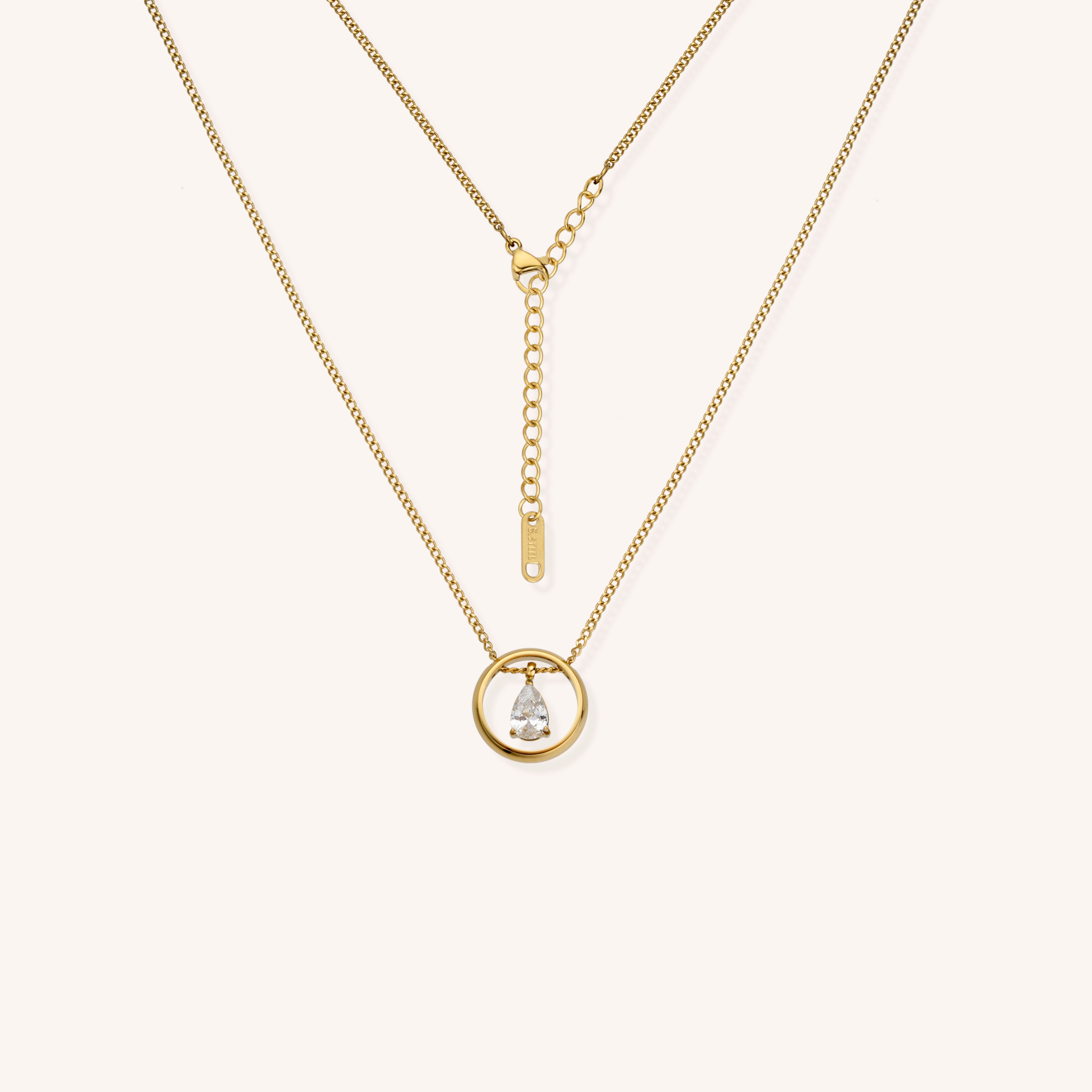 The Forever Crystal Necklace presents refined elegance in a circular pendant design, anchored by a luminous crystal center. A sophisticated choice for those who appreciate understated luxury and timeless appeal.