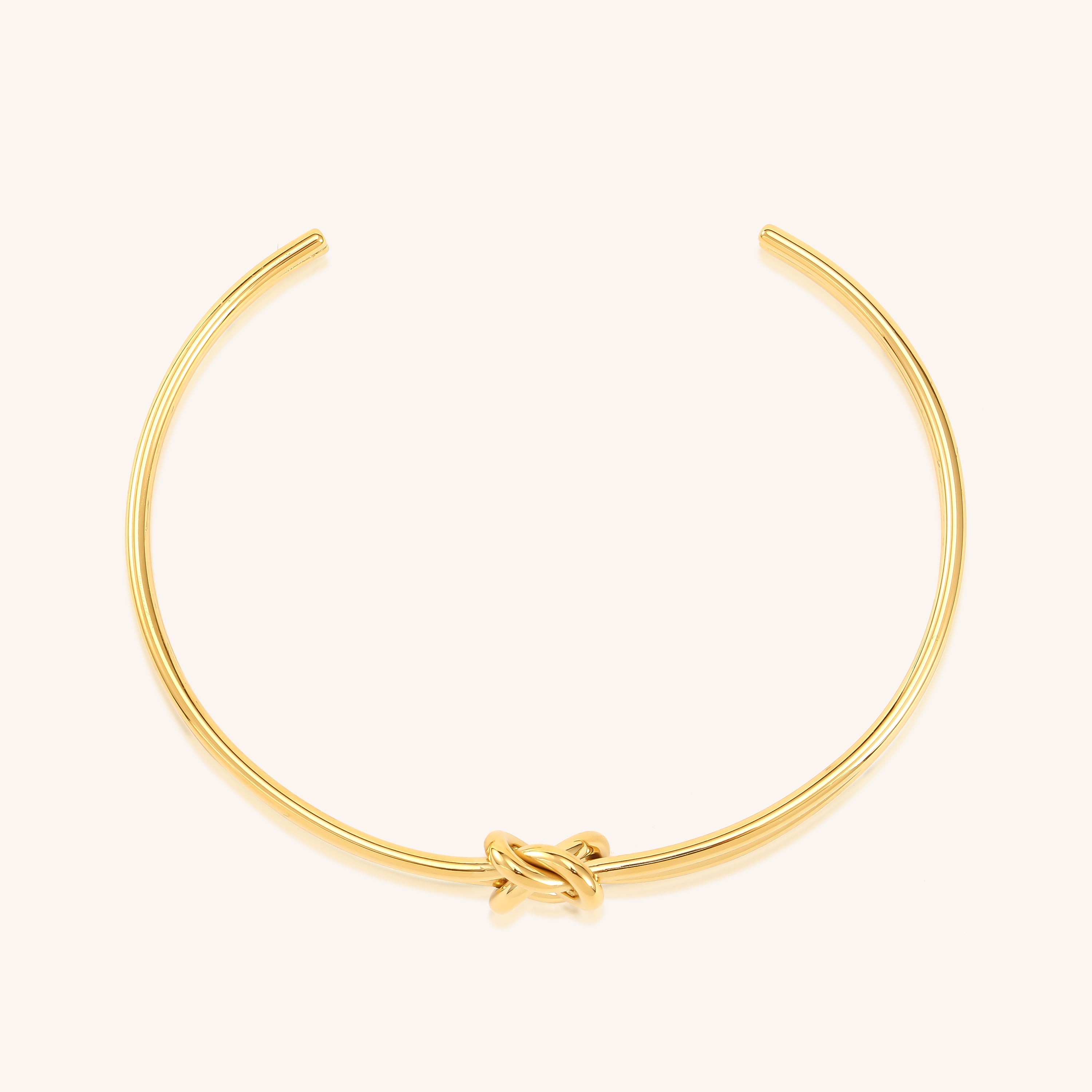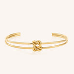 Tie your look together with our Gold Knotted Bangle! This piece features a playful knot tie design that will elevate any outfit. No need to tie yourself in knots trying to find the perfect accessory - this bangle has got you covered.