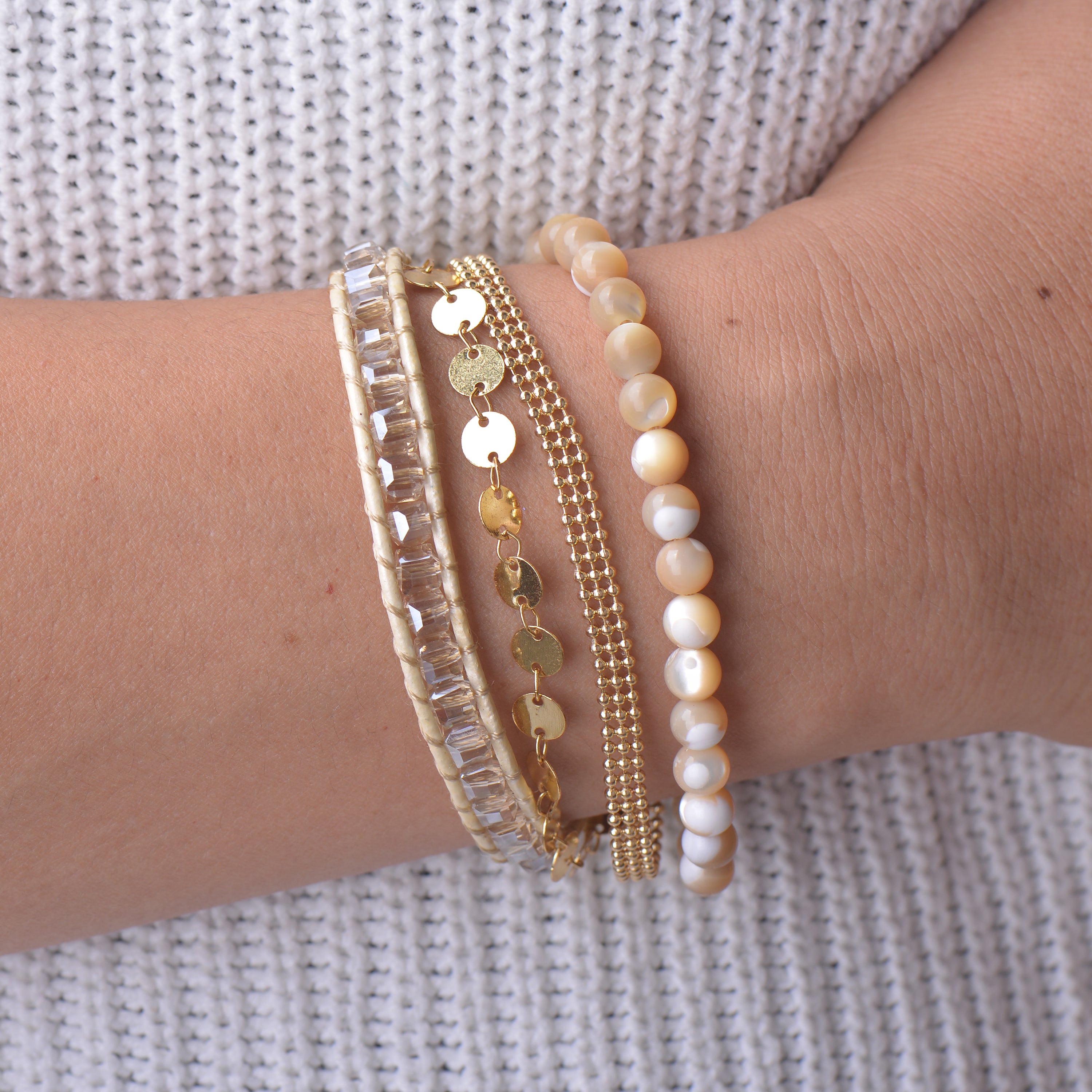 Stacked bracelets but all on one clasp. The perfect pre-layered piece.