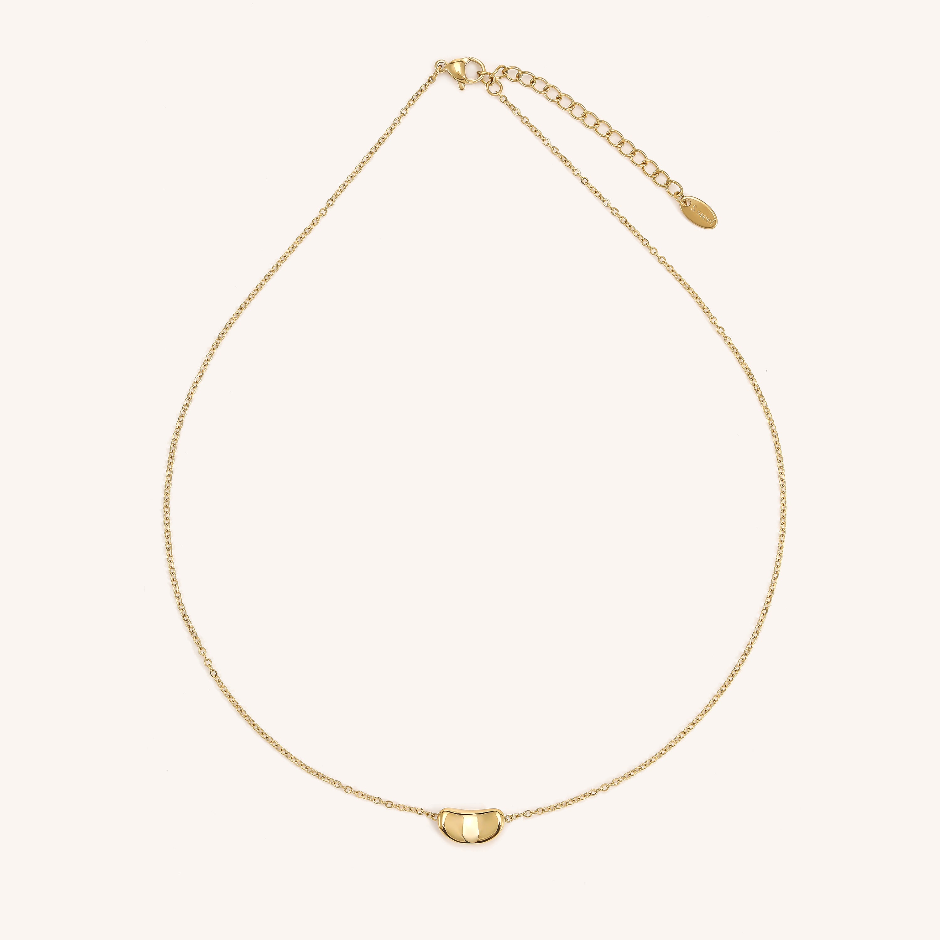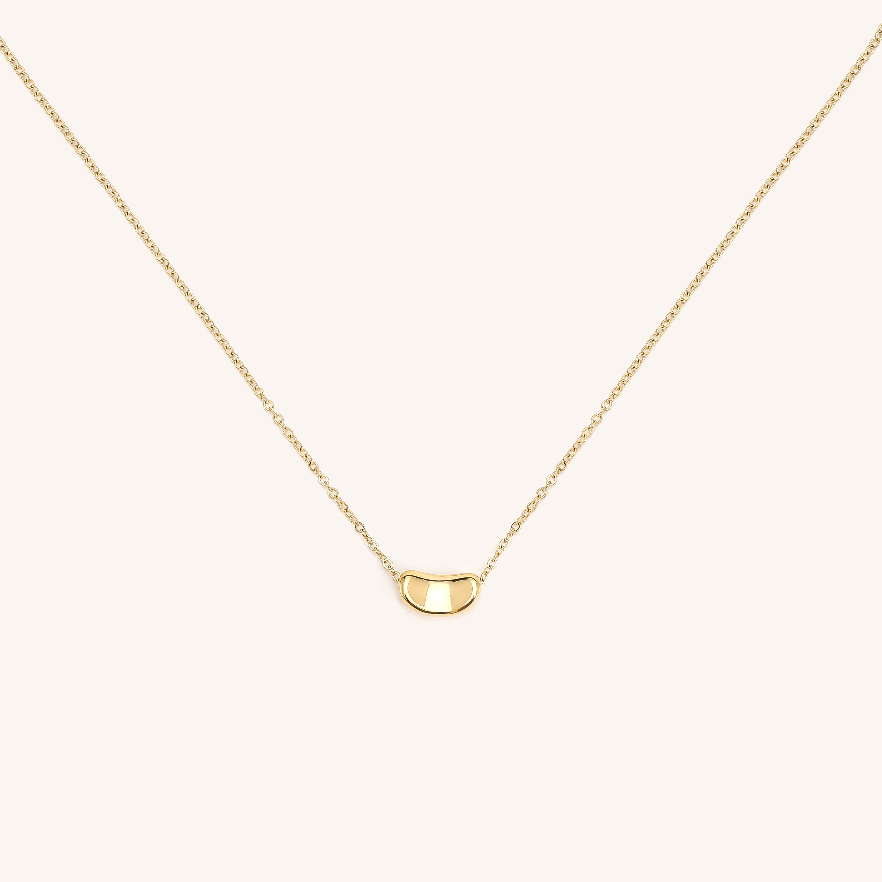 The Kylie Geometric Necklace features a simple gold bean shaped pendant that adds just enough visual interest to your look. Its clean design adds a fun, modern touch that's perfect for everyday wear.
