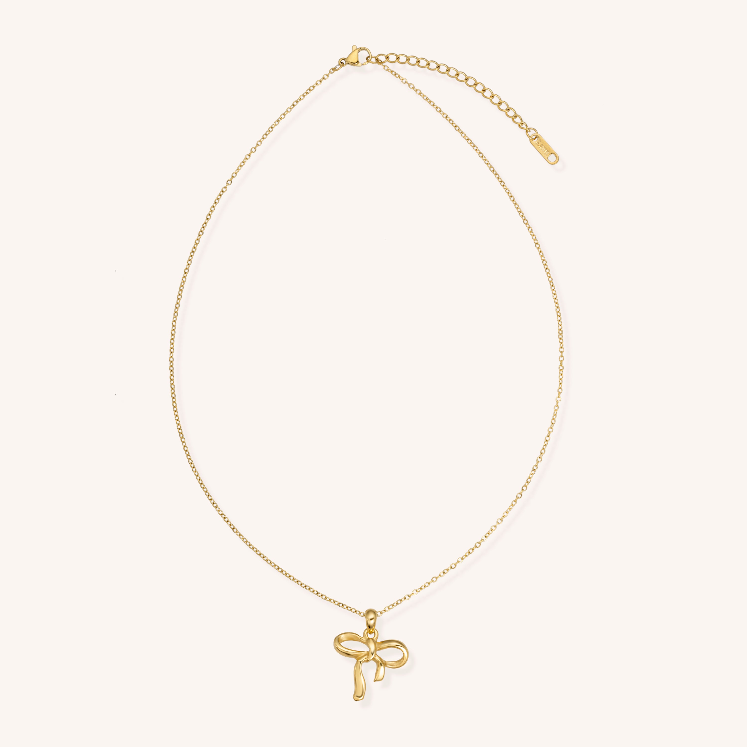 Elevate your neckline with this striking Large Bow Necklace, a timeless piece that seamlessly transitions from day to evening. The graceful bow silhouette adds an instant touch of refined elegance to any ensemble, whether paired with casual basics or formal attire.