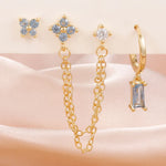 Modern, versatile, and effortlessly cool. The Luna Link Chain Hoops are designed to create a layered, curated-ear look with a single piece. Featuring a sleek geometric hoop paired with a sparkling cubic zirconia stud and a delicate double-chain connector, these earrings add movement, dimension, and just the right amount of shine.