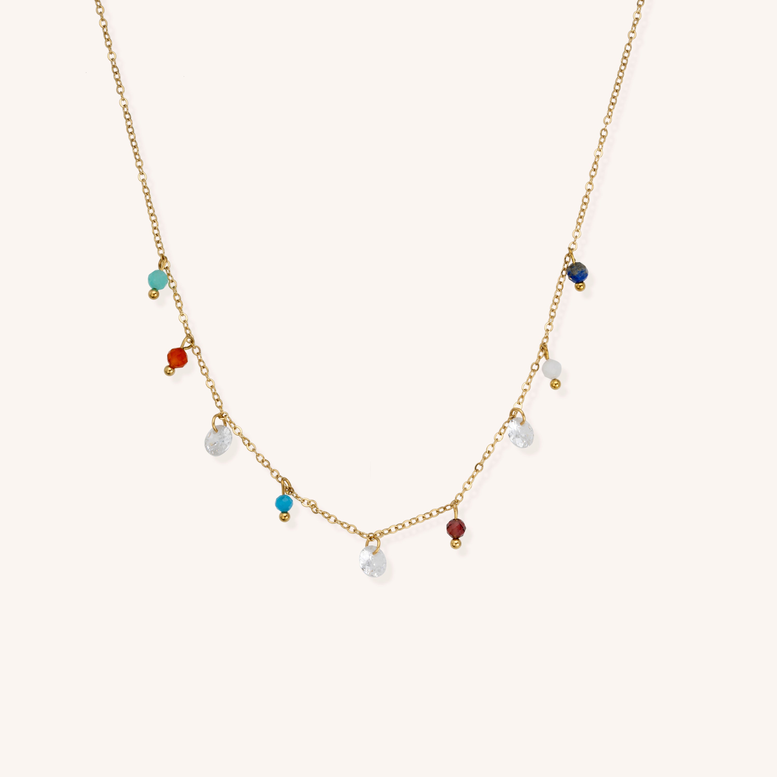 The Rachel Holiday Necklace dazzles with colorful ornament-inspired shine. This festive beauty radiates holiday sparkle and charm in vibrant hues. Wear your celebration around your neck with this charming piece.