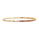 The Golden Luxe Tennis Bracelet captures radiant elegance in a warm gold finish. This refined piece features a continuous line of shimmering cubic zirconia stones that bring effortless glamour and timeless shine to your wrist. A classic yet modern bracelet designed for everyday wear, celebrations, and special moments.