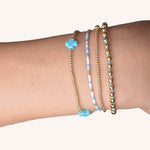 This set includes a sleek gold and a delicate turquoise bracelet, perfect for layering or wearing on their own. Elevate any outfit with these timeless pieces.